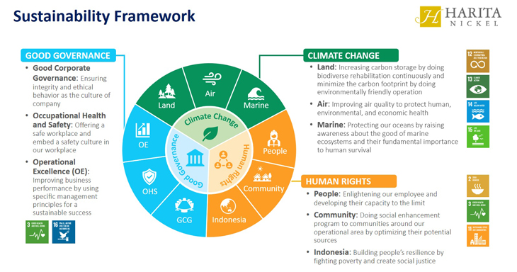 As part of Harita Nickel, we are guided by the Harita Nickel Sustainability Framework which focuses on 3 main pillars, namely: climate change, human rights and corporate governance.